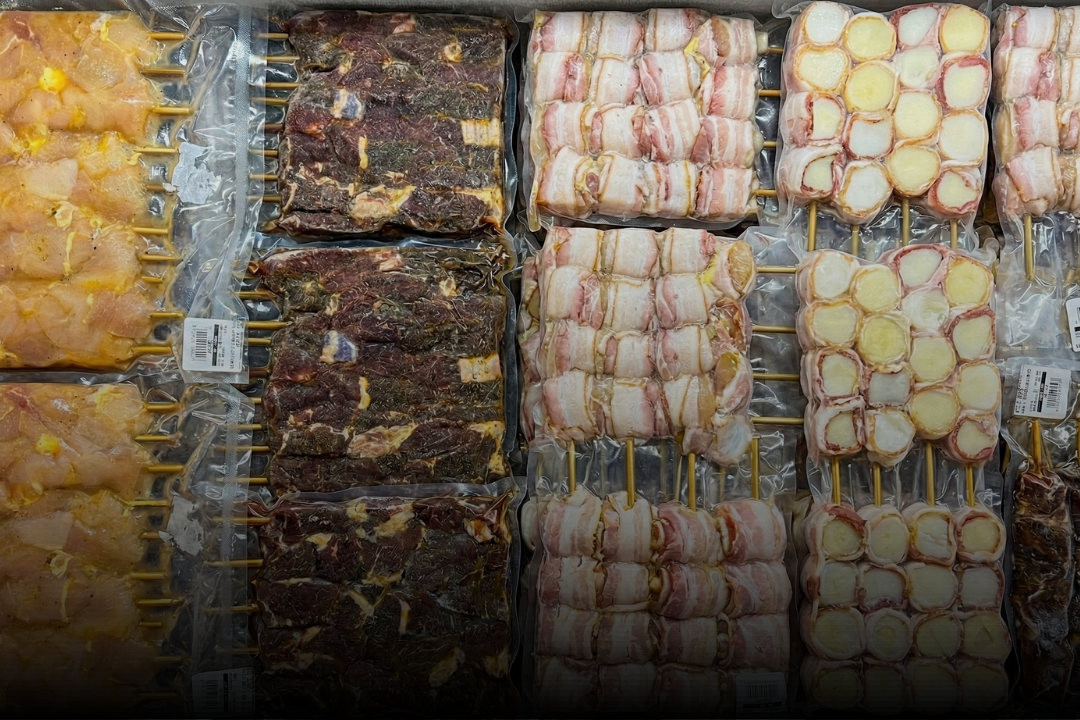 *Espetinhos resfriado, temperados, de fabricação própria;